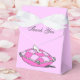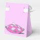 Uma caixa de favorecimento personalizada do partido "Obrigado" rosa com letras elegantes de escrita e arte vintage de um travesseiro com um escorregador de Cinderela de um conto de fadas. Clique em Personalizar para alterar fontes, cores de fundo e muito mais.