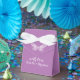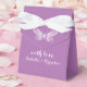 Um guião de fita rico e uma borboleta desenhada manualmente acendem esta caixa de favor roxa.