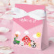 Caixa de favorecimento do tema da fazenda bonita com fundo cor-de-rosa para festa de aniversario de meninas / chá de fraldas.
