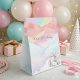 Mande seus convidados para casa com alegria usando essas caixas mágicas de aniversário de unicórnio arco-íris. Decoradas em cor-de-rosa pastel, roxo e amarelo com um design de unicórnio caprichoso, essas caixas são perfeitas para rechear doces, brinquedos ou pequenos presentes. Um detalhe doce e prático para completar sua comemoração de aniversário unicórnio.