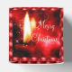 A chama de uma vela vermelha solteiro brilha intensamente sobre a caixa de favoritos do "Feliz Natal", que apresenta linhas diagonais de miçangas vermelhas brilhantes (ou tufagem em forma de diamante) nas laterais. Por cima, o fundo da vela é um mar sujo de vermelho acentuado com cinzas estelares. Em uma letra de ouro pálida está sua inscrição. Usamos "Natal Casado". Você pode editar o texto facilmente para qualquer coisa que quiser. Basta clicar em Personalizar.