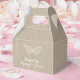 Belo roteiro de fita e uma delicada borboleta de legado decora esta bela caixa de favoritos.