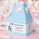 Caixa azul de fazenda de bolinhas com vaca e porco para animais de criação é o aniversário principal.