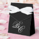 Estas lindas caixas de favor de casamento são perfeitas para os seus favores de casamento. Ele apresenta suas iniciais em um roteiro elegante e branco e no verso estão seus nomes e datas de casamento em uma caixa preta.