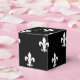 Caixa de favoritos de casamento personalizados | fleur de lis. Boa ideia para os convidados. Design elegante com padrão de pulgas. Cor de fundo preto e branco ou personalizada. Inclua o nome da noiva e noiva mais mensagem no topo. ie Obrigado!