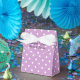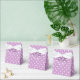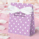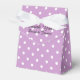 Caixa personalizada de casamento. Lavanda roxo impressão com padrão bolinhas branco. Obrigado personalizado que você envia da noiva e do noivo. Impressão de polkadot bonito com arco de fita branca elegante. Cor de fundo personalizável.