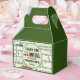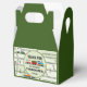 Um labirinto de desenho animado de trilhos de trem com trens, sinais e sinais. O texto personalizável com um obrigado que você" aparece na parte frontal e traseira deste trem e acompanha a caixa decorada. Perfeito para uma festa de aniversário com o tema do trem! Os teus convidados adorarão levar as suas guloseimas para casa nesta caixa!