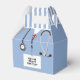 Design com o tema médico com esfregões de hospital azul. Editar texto para personalizar.