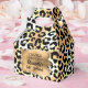 Uma caixa de favoritos de padrão de impressão leopardo selvagem mostra seu obrigado, sua mensagem em tons dourados enrolam a frente em letra chic. Bonita para a festa de aniversário feminina, caixas de chá de panela, garotas, noite fora e muito mais. CORRESPONDENDO a itens na nossa loja.
