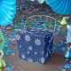Esta caixa de favor é mostrada em um impressão festivo flocos de neve de Natal em azul-safira. Personalize este item ou comprar como está.