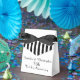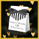 Que maravilhosa Caixa de Favor do Partido personalizado para um 75º Aniversário de Casamento ou outra ocasião especial. Esta Caixa de Favoritos é decorada com um padrão de listras brancas e pretas sobre um fundo branco. Na frente, Nomes e Evento em preto. No verso, "Obrigado por Celebrar Conosco" e espaço para a Data Opcional. Uma fita preta completa o olhar festivo. Uma caixa de favores moderna, elegante e chic Wedding Anniversário. Todos os Direitos Reservados © 2015 Alan & Marcia Socolik.