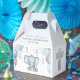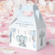 Esta adorável caixa de favoritos apresenta elefantes azuis e cinzas com balões e confete. Os lados apresentam uma cruz prateada. Facilmente personalizado para seu evento clicando em personalizar. Perfeito para seus convidados!