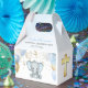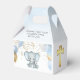 Esta adorável caixa de favoritos apresenta elefante azul e cinza com balões e confete. Os lados apresentam uma cruz dourada. Facilmente personalizado para seu evento clicando em personalizar. Perfeito para seus convidados!