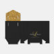 Seus convidados adorarão sua atenção aos detalhes. Personalize esta maravilhosa caixa de favoritos de noiva de ouro com seu monograma personalizado, noiva e noiva e data de casamento. Elke Clarke © Perfect para um elegante casamento de vidro preto e dourado.