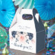 Uma bela caixa de favores, com uma elegante mistura de marinho azul e borrado, perfeita para apresentar pequenos presentes com um toque refinado e na moda.