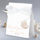 Encerre doces no estilo! Esta caixa de favoritos apresenta uma delicada camada de aquarela e pérolas, acrescentando um elegante toque costeiro aos presentes do seu chá de fraldas.