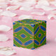 Este padrão único inspirado na Ásia apresenta um aspecto de corte de madeira e uma paleta multicores de verde, azul, laranja e preto, que adiciona um toque de sofisticação moderna à sua doação de presente astuto.