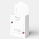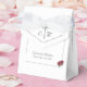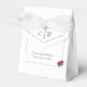 O design de flap frontal apresenta o símbolo tradicional de cruz e anéis exibidos no centro entre as iniciais da noiva e do noivo. Fonte nupcial de iniciais adiciona o aspecto de elegância e sofisticação. Os nomes da noiva e do noivo, juntamente com a data do casamento, são mostrados abaixo. Quando o flap é aberto, sua mensagem de gratidão é revelada! Um elegante floresce as bordas com a imagem de dois rosas unidos no canto. A imagem de dois rosas associados também aparece na frente e no verso. Excelente para guardar favores de casamento ou favores de chá de panela. Projetado para coordenar com a suíte de casamento católico das Rosas Finas.