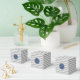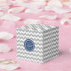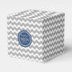 Caixa de favoritos de casamento com monogramas personalizados em cinzas de carvão, padrão de listras de zigzags com marinho azul e branco retro chevron.