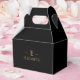 "Adicione um toque de elegância ao seu evento com esta Caixa de Favoritos do Monograma Preto e Dourado. Perfeito para casamentos, festas e ocasiões especiais, ele apresenta um design preto elegante com um monograma personalizado de ouro, fazer que seja a escolha ideal para dar aos seus convidados."