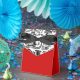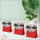 Caixa de favores de festas mostrada em vermelho com um bigode e impressão de chapéus bonitos. Personalize este item ou comprar como está.