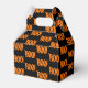 Caixa de favorecimento de festas de estilo elegante mostrada em preto/laranja com um impressão de Halloween BOO! fofo. Personalize este item ou comprar como está. Dica: Adicione uma fita bonito.