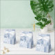 Uma caixa de adivinhação chic Tent e correspondente ao titular da escova de dentes, com uma nostálgica manta de retalhos Faux de padrões florais, de cheques e bolinhas, em Azul e Branco Indigo. Parte da coleção Posh e Painterly 'Indigo', esse padrão pode ser facilmente ajustado para ajustado qualquer Favor Box.