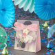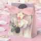 Caixa de favores cor-de-rosa, com fita rosa e imagem de vintage, na frente e atrás, do palhaço triste Pierrot com uma lágrima no olho e uma rosa longa-haste na mão. Pierrot é um personagem que evoluiu na aparência com romântico, decadente, simbolista e início do Teatro e Arte Modernista. Essa imagem é a imagem popular de Pierrot nos anos 1980. Ver confete correspondente, bolsa de favor, sacos de presentes, etiqueta de presente, etiqueta, etiqueta, adesivo redondo e papel de embalagem. Veja toda a coleção Tubular 80s Favor Box nos TOUCHES ESPECIAIS | Seção Favoritos para festas.