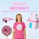 Uma caixa de favorecimento de parte personalizada com o nome do evento e o obrigado da mensagem. Design para o aniversário do tema da boneca rosa inspirado no filme Robbie Margot.