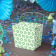 Pequenas flores verdes. Uma fonte gráfica é repetida várias vezes, em várias linhas, criando um padrão de pequenas flores margaridas em filas através do produto. A cor Fonte é verde (você pode alterar a cor da fonte para a sua escolha).