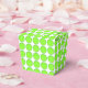 Os pontos verdes com uma aparência 3-d, mostrando sombra de queda, são replicados em linhas na caixa.