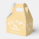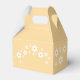 Oh, bebês! Caixa de favorecimento de chá de fraldas margarida inspirada retroativamente com margaridas do estilo 70 e fontes e cores de vaivém.