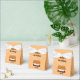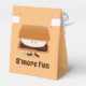 Um papel, caixa de presentes, recipiente com mores sorridentes em dois lados e palavras personalizáveis.