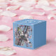 Peito com garganta amarela, sentado em galhos de ameixa primavera florescente. A imagem é duplicada na frente e atrás de uma caixa azul. Personalize o texto angloriado no topo: o texto padrão diz "Um presente para você!"