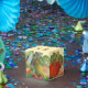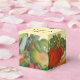Uma pequena caixa com texto personalizado em cima em letras castanhas retroradas e lados decorados em arte de colheita de tomates, peras, morangos, cenouras e milho num fundo de pergaminho falso. Um tamanho perfeito para organizar e salvar sementes ou plantas do seu jardim.