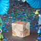 Caixa de lembrança de casamento com design moderno de folha de palmeira em terracota rústica boêmio boho, grama pampas, botânica seca, floral em aquarela elegante e tendência. Letreiro moderno com Mr e Mrs. Parte de uma coleção de casamento.
