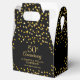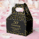Elegante caixa de lembrancinha de bodas de ouro dos 50 anos de casamento com confetes em forma de coração dourados espalhados pelo seu nome, data especial e mensagem de agradecimento em tipografia moderna. Uma maneira perfeita de agradecer aos seus convidados! Desenhado por Thisisnotme©