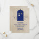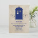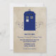 Caixa de Polícia Simples e divertida Salve o Anúncio de Data com uma brilhante caixa de polícia azul vintage flanqueada por turbilhões e estrelas azuis em um papel vintage. Fácil de personalizar, basta adicionar os detalhes do casamento nos campos de texto fornecidos. Clique em "Personalizar" para encontrar mais opções de personalização.