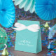 Esta caixa de presente de na moda é uma turquesa clássica, acentuada por um belo guião de fita, que é fácil de personalizar.
