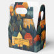 Caixa de presente de outono com pintura de casas coloridas em cores de queda. Bonita para o Dia de Ação de Graças, um aniversário de outono ou outra celebração de outono.