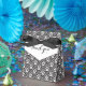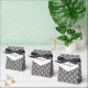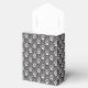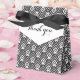 Caixa de presente clássica preta e branca. Lê Obrigado. Ideal para casamentos com tema mono preto e branco, eventos de gala e outras celebrações. Desenhada por Sarah Trett.
