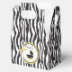Impressão zebra com carruagem de bebê e caixa de presente de chá de fraldas amarelo de sotaque design.