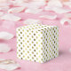 Caixa de favorecimento elegante feita em um padrão de bolinhas de tom dourado, num fundo branco. Uma caixinha adorável para doces e qualquer outra coisa que queiras dar aos teus convidados.