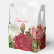 Caixa de presente de festa estilo vintage com rosas para o aniversário de uma mulher, aniversário de casamento ou evento de casamento. Lindas rosas grandes vermelhas, rosadas e brancas cobrem as laterais desta caixa de presente com uma alça. Inclui o texto "obrigado" na frente em vermelho, ou pode ser alterado. Outros tipos de caixas funcionarão, mas o texto precisará ser excluído. A cor do fundo é cinza muito claro.