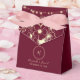 Elegante, rústica, caixa de presente boho marsala burgundy com monograma, renda floral dourada, luzes de corda e caligrafia moderna. Em combinação com o selo de cera da mesma coleção, é possível criar uma reflexão mais forte da personalidade do casal, história de amor e singularidade.
