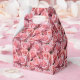 Caixa de favor de festa é mostrada com uma linda impressão floral de rosas cor-de-rosa.