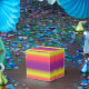 Obrigado seus funcionários ou clientes com um presente especial ou caixa de presentes especial. Ideal para ofertas corporativas para clientes ou funcionários. Pode também ser usado para favores de casamento ou comemorações de aniversário cheias de doces ou presentes. Uma caixa de presentes brilhante estilo listrado de dente de cão, rosa, limão amarelo verde e roxo. Desenhada por Sarah Trett.