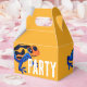 Esta caixa de dobra de festa tropical apresenta o padrão de manchas e listras de um sapo de dart venenoso laranja