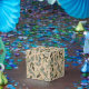 Caixa de presentes de Natal com fundo de imagem kraft rústico e design de padrão floral