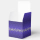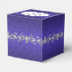 Caixa de favoritos de casamento elegante feita em um fundo azul de regência. O topo da caixa tem uma cinza decorativa de prata e uma placa de texto branca, com texto personalizado azul de regência pronto para personalizar. Gráficos digitais adoráveis de uma joia floral de tom prateado como a garland, correm pelo meio da caixa. Uma caixinha adorável para doces e qualquer outra coisa que queiras dar aos teus convidados.